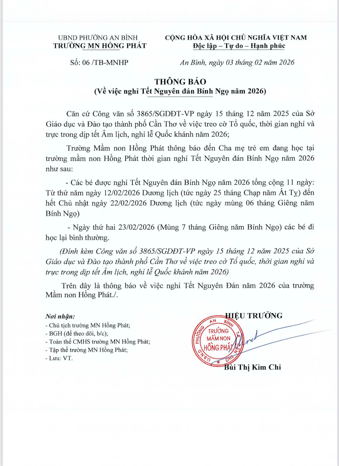 04 02 TRƯỜNG MẦM NON HỒNG PHÁT THÔNG BÁO LỊCH NGHỈ TẾT NGUYÊN ĐÁN NĂM 2026 04/02/2026 By Hồng Phát Hoạt động của trường,