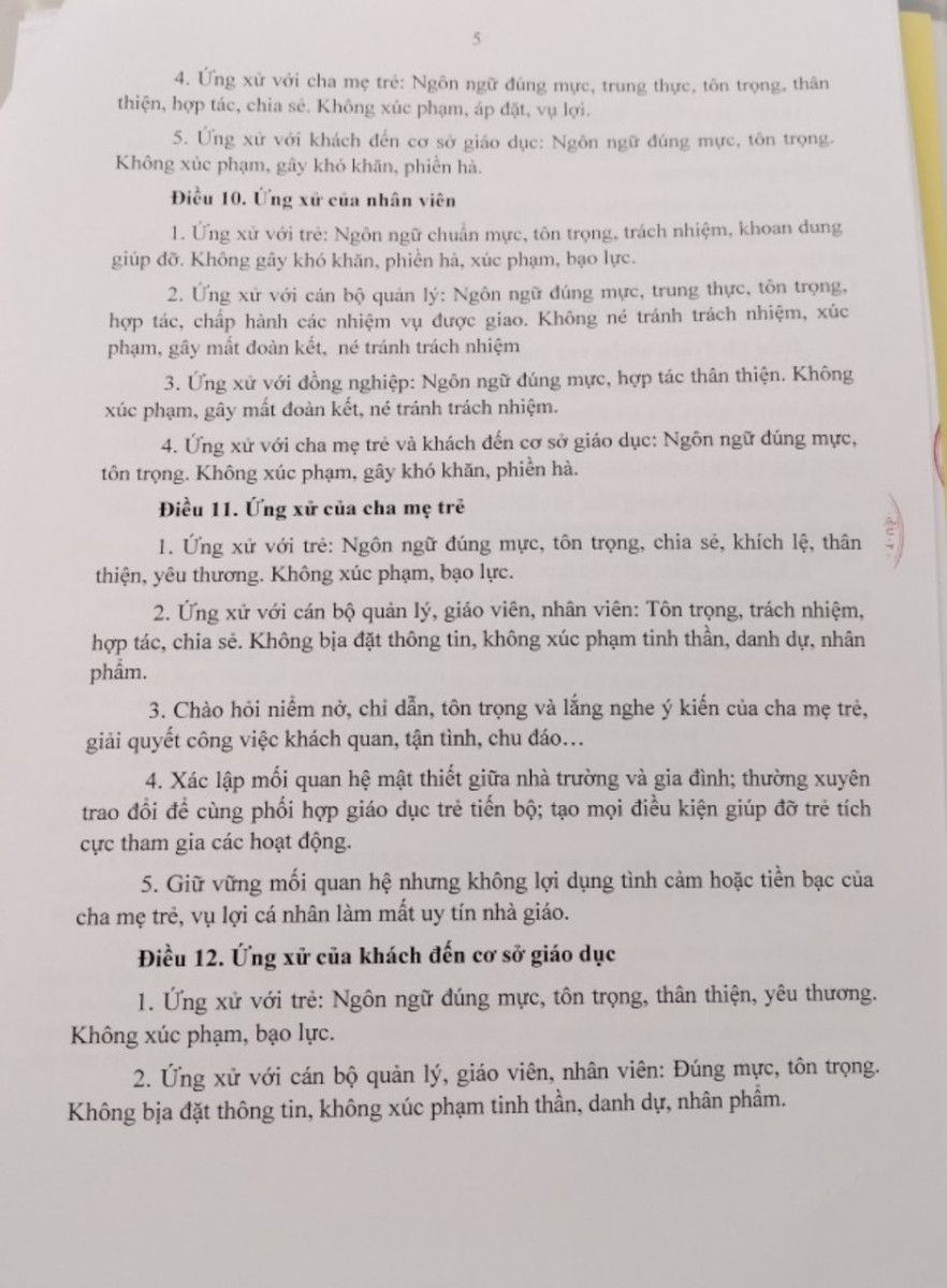 Những quy tắc ứng xử trường mầm non Hồng Phát
