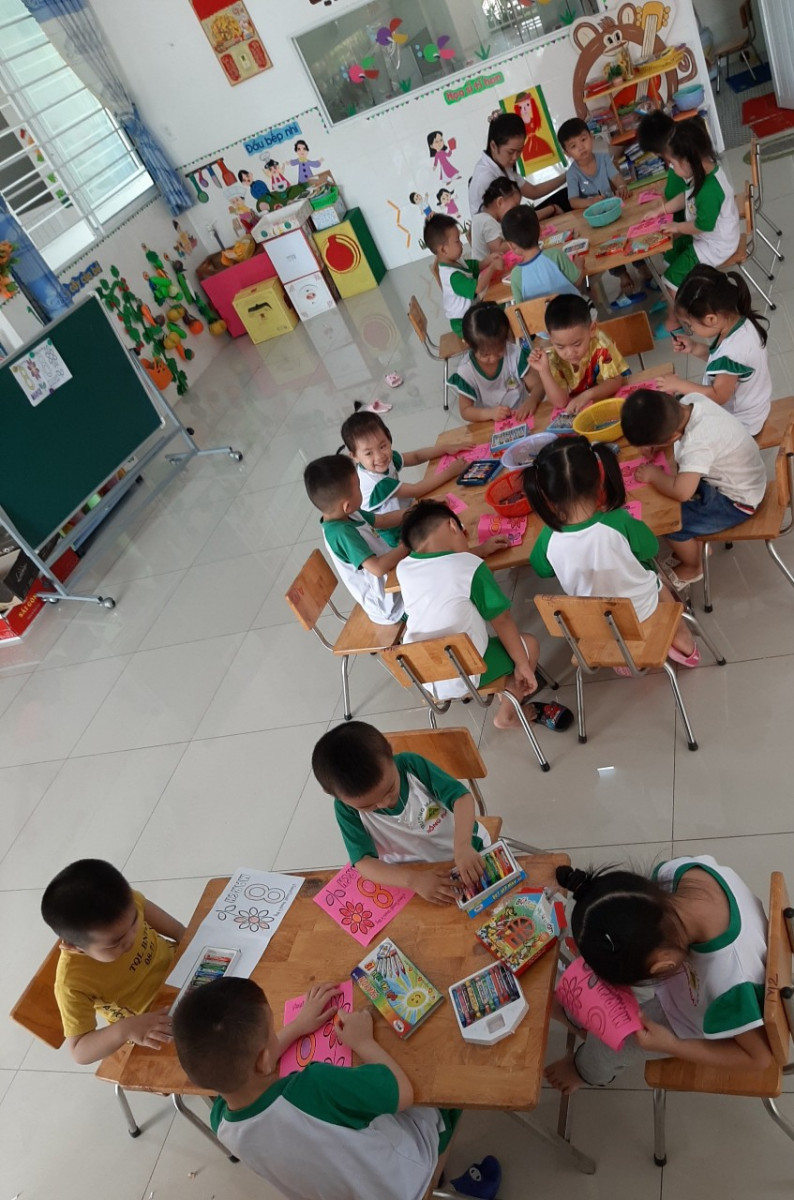 Mầm non Hồng Phát phun thuốc khử trùng COVID 19 trước khi nhập học lại sau dịch