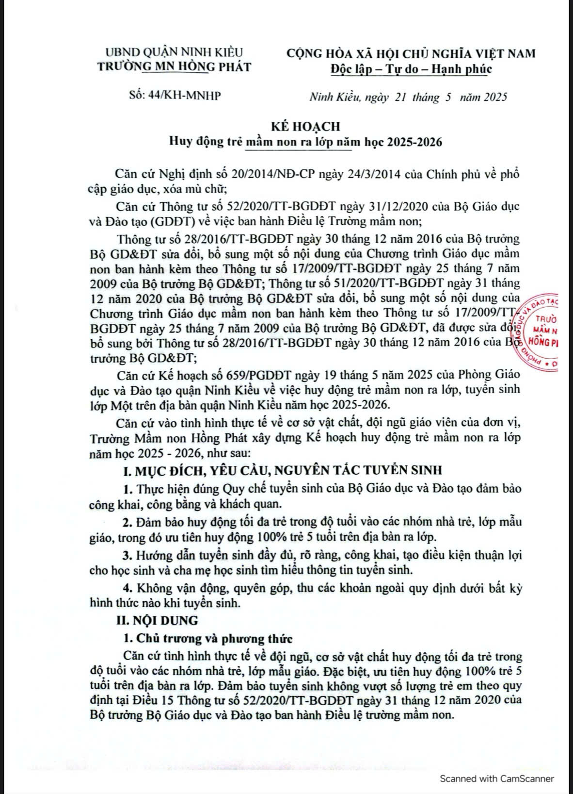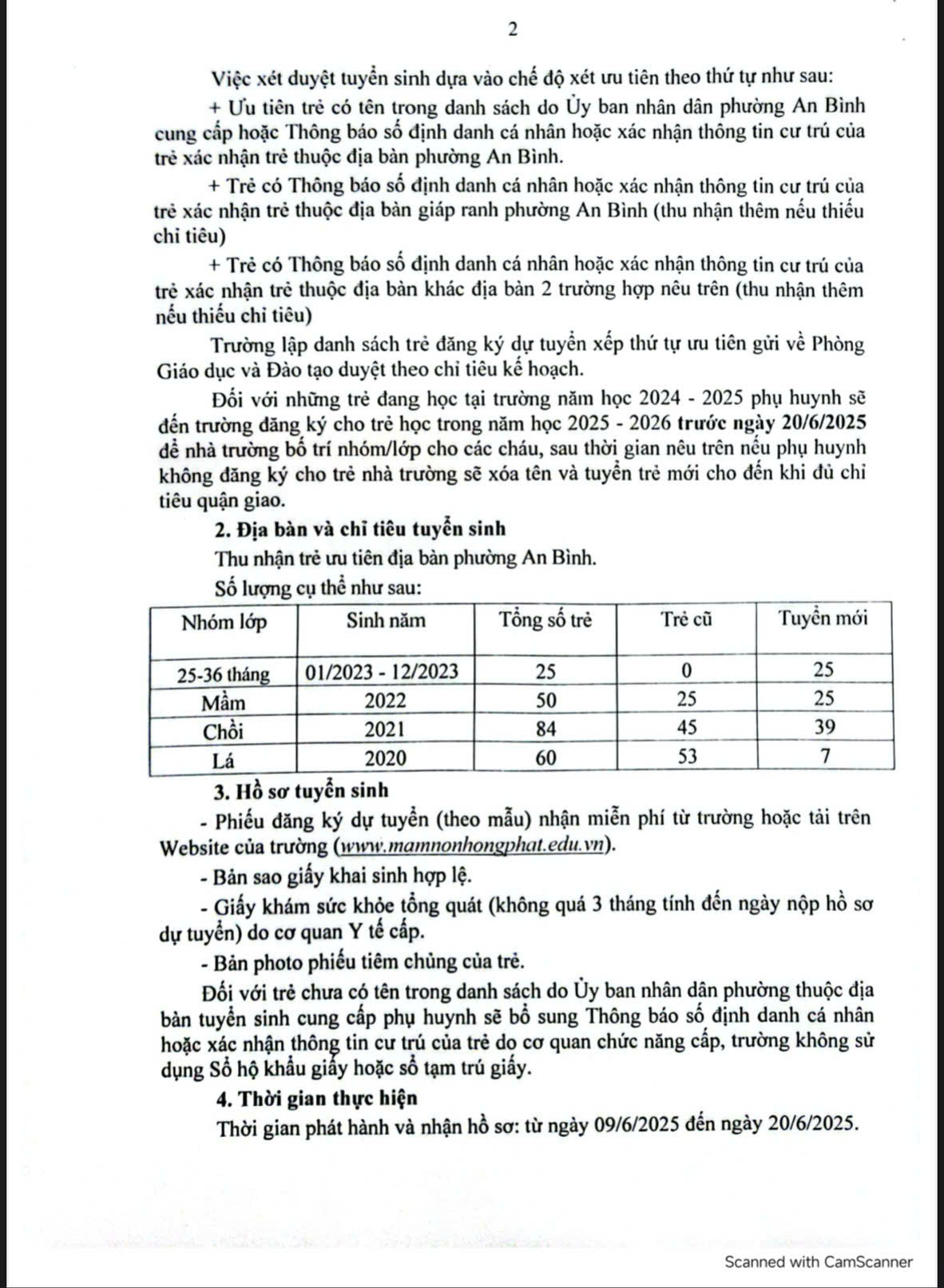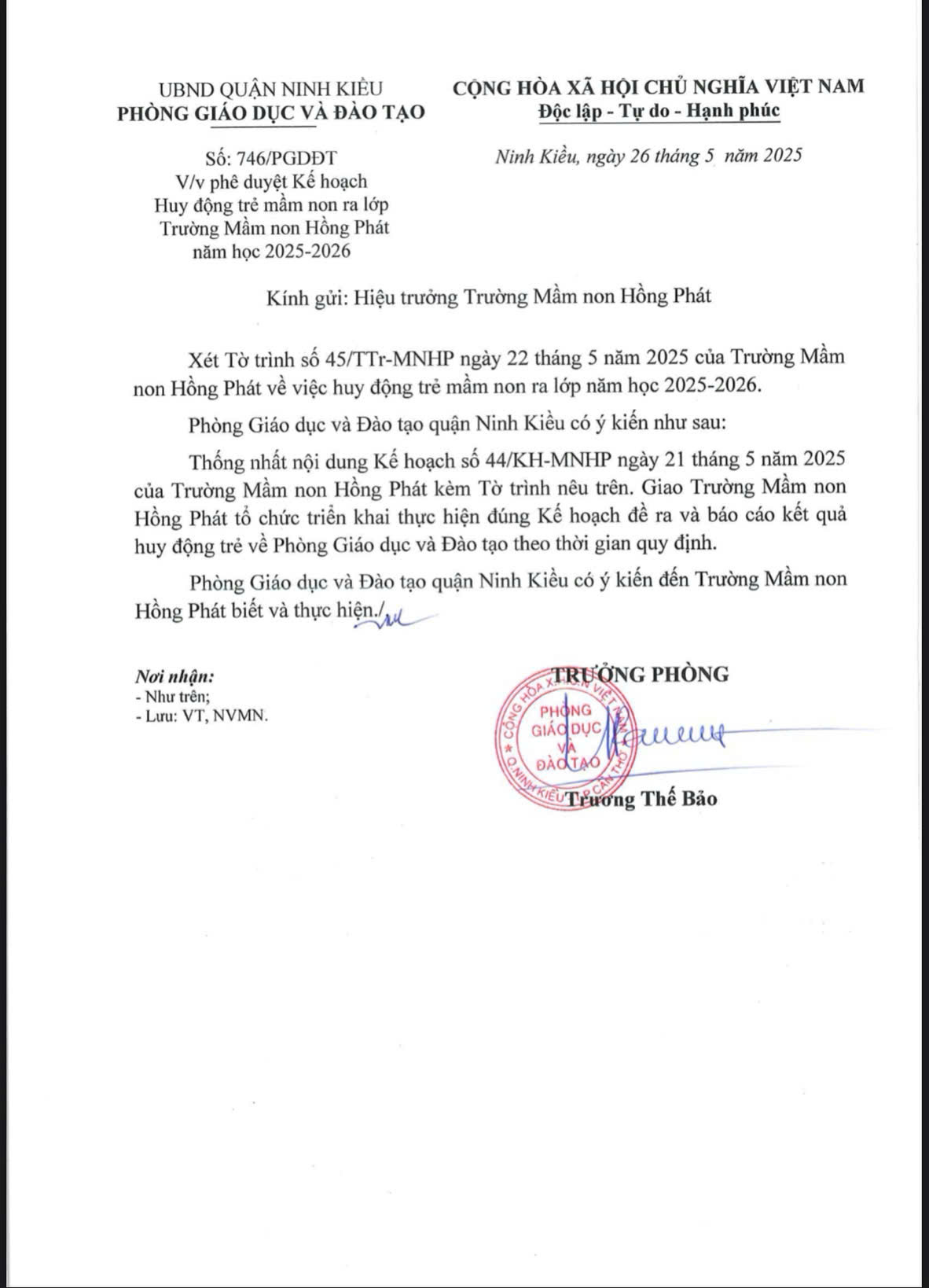 Trường Mầm non Hồng Phát tuyển sinh năm học 2025 - 2026