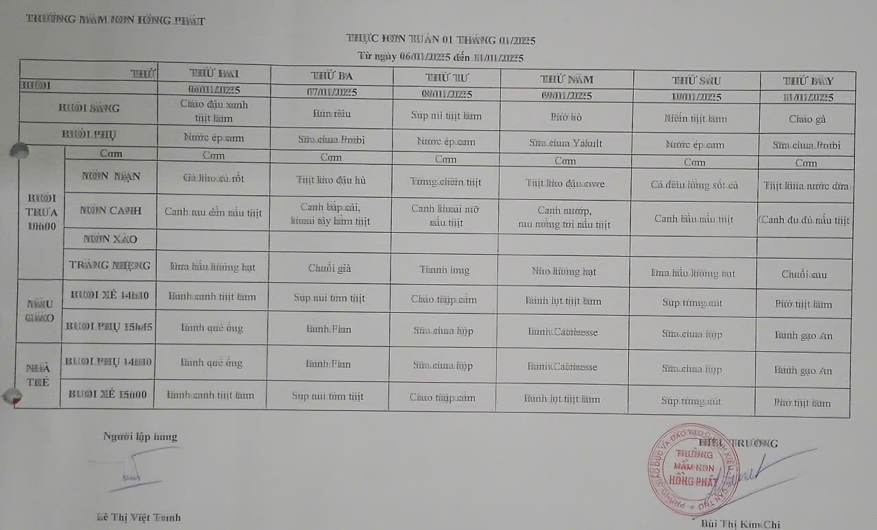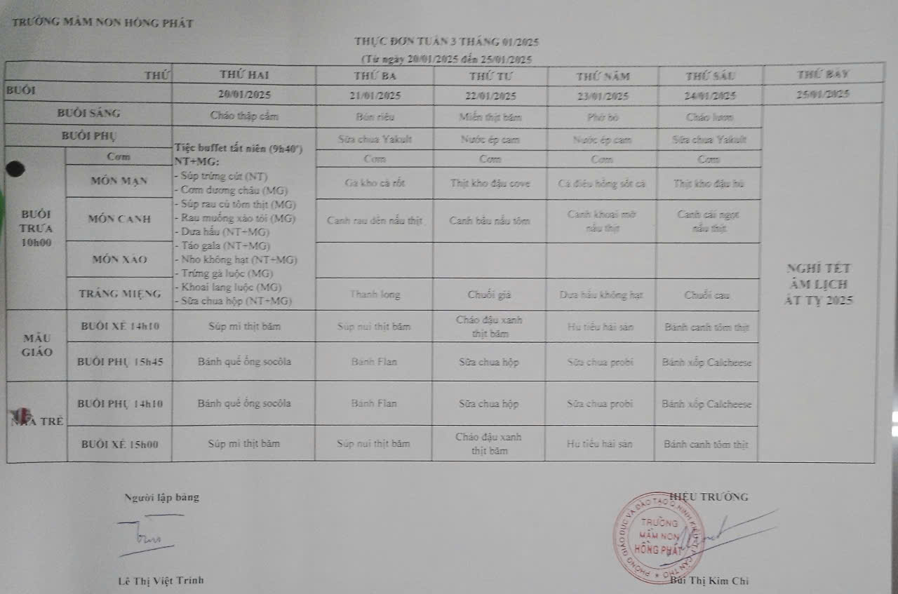 04 01 Trường MN Hồng Phát công khai thực đơn cho trẻ tháng 01/2025 04/01/2025 By Hồng Phát Công Khai,