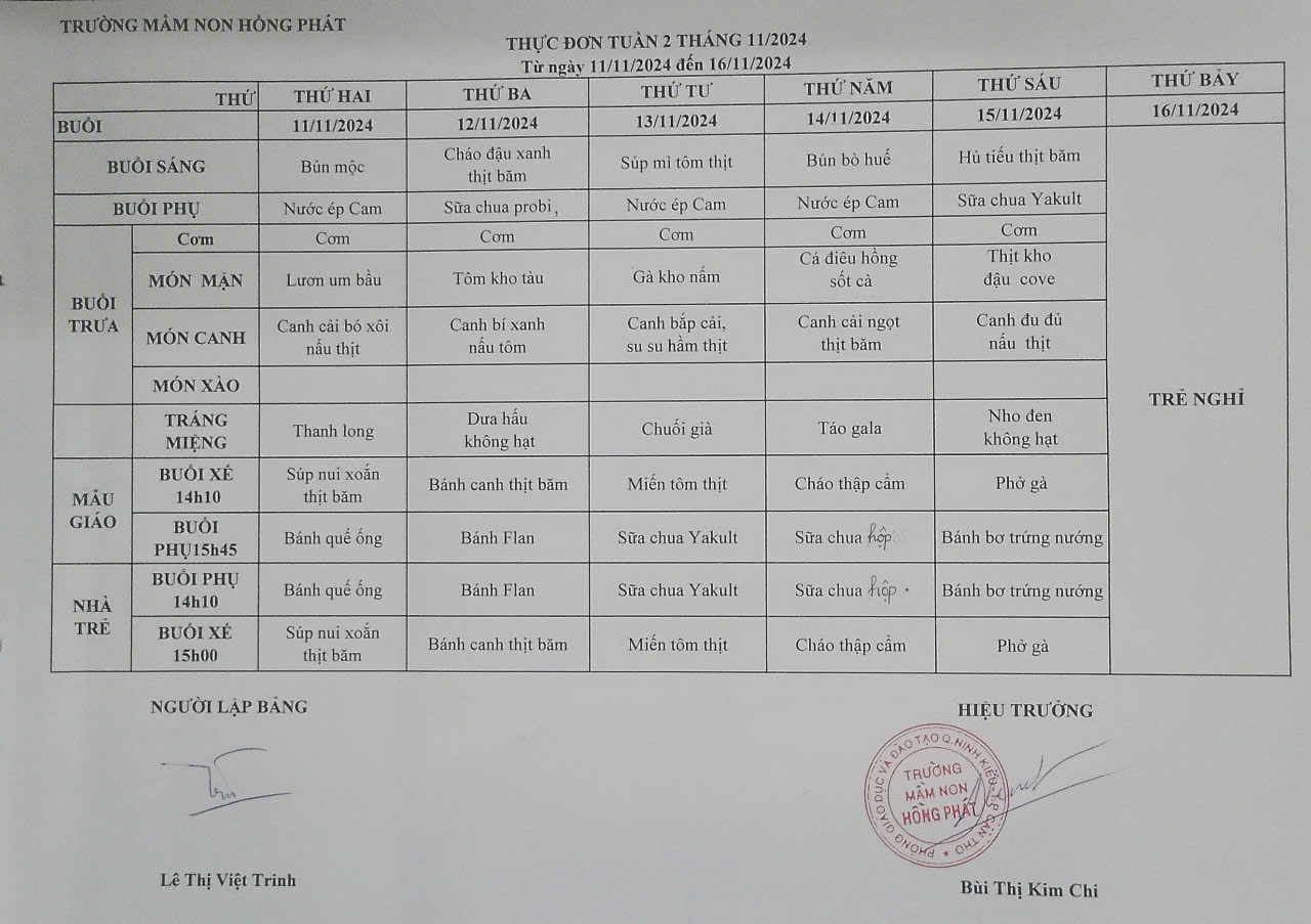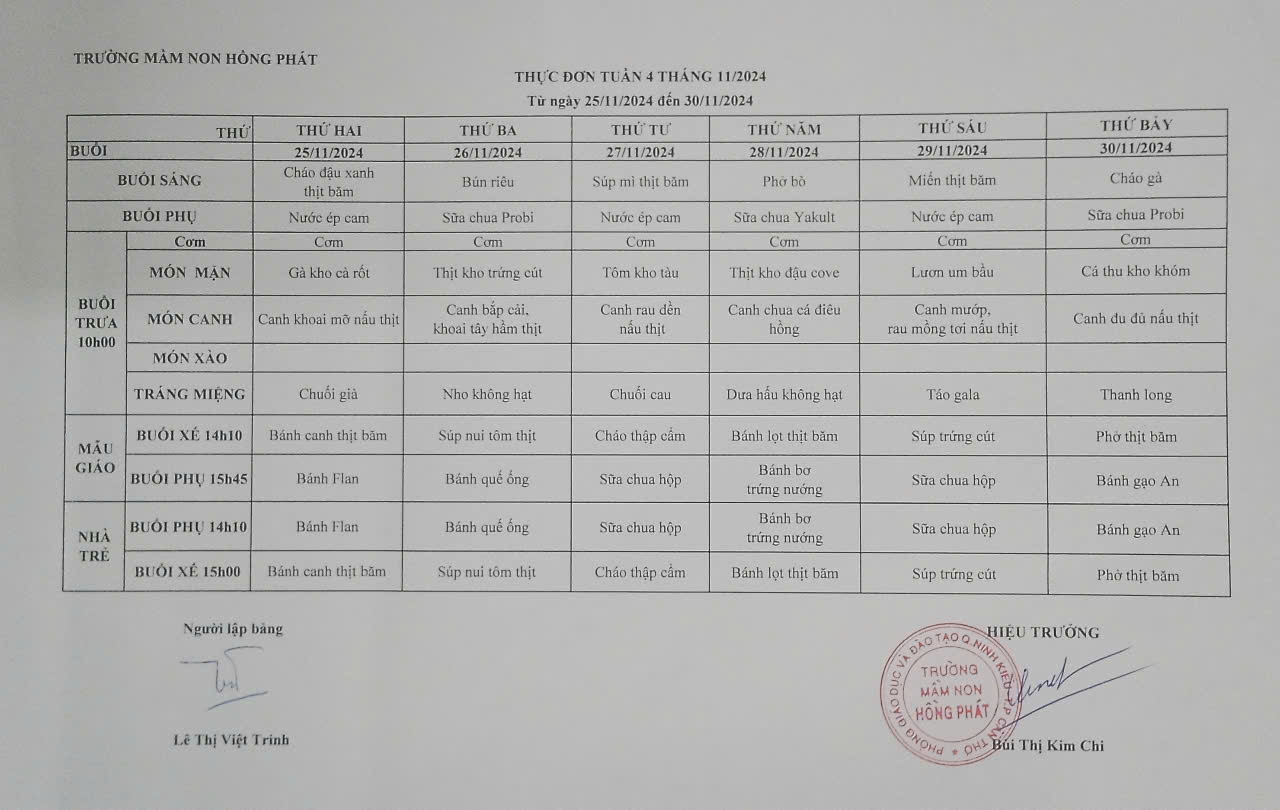 26 10 Trường MN Hồng Phát công khai thực đơn cho trẻ tháng 11/2024 26/10/2024 By Hồng Phát Công Khai,